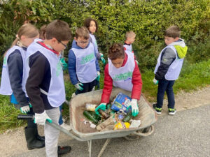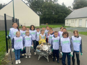 « Nous aimerions que les animaux et la nature soient respectés alors merci de jeter vos détritus dans des poubelles ou à la déchèterie installée à Lusanger ! L’année prochaine, on espère que notre brouette sera vide malgré notre recherche de déchets !!! »
