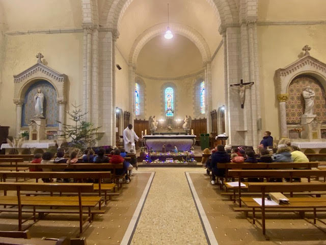 Ce matin nous sommes allés à l’église voir la crèche et célébrer Noël ensemble.