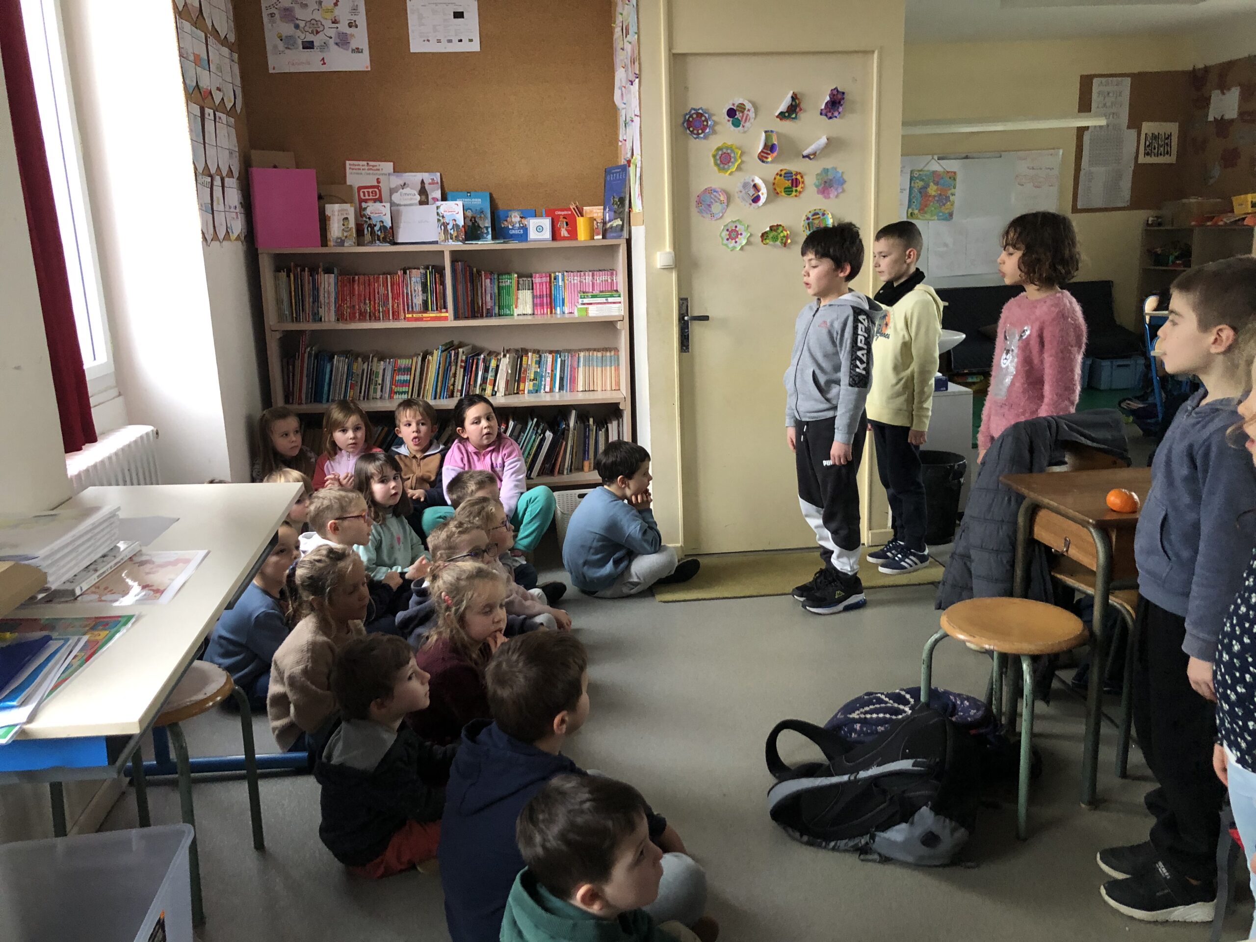 Les élèves de CE-CM ont préparé un petit musée dans leur classe pour clôturer le travail sur les Etats-Unis. Ils l’ont ensuite présenté aux élèves de Maternelle/CP.