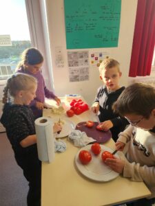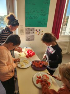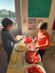 La semaine du goût se poursuit…. ce mardi 14 octobre les élèves de l’école ont dégusté des tomates et de la mozzarella !